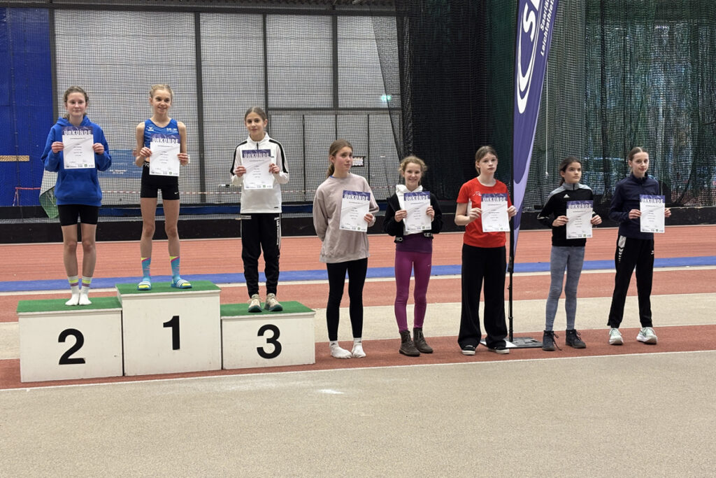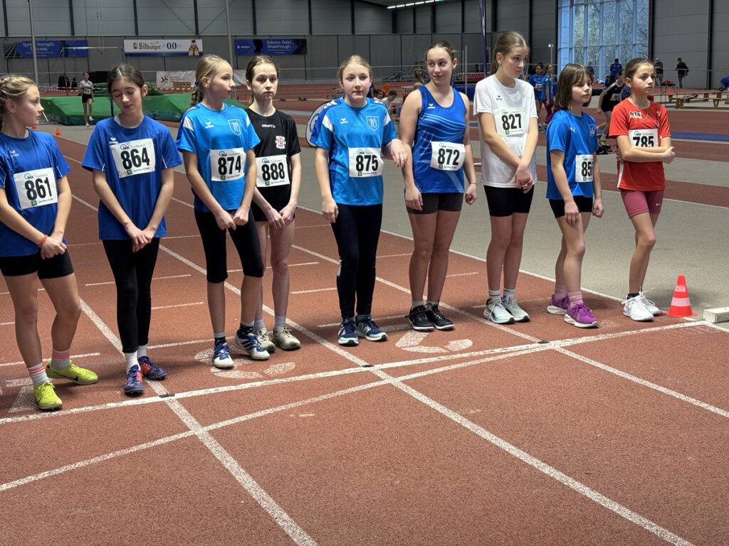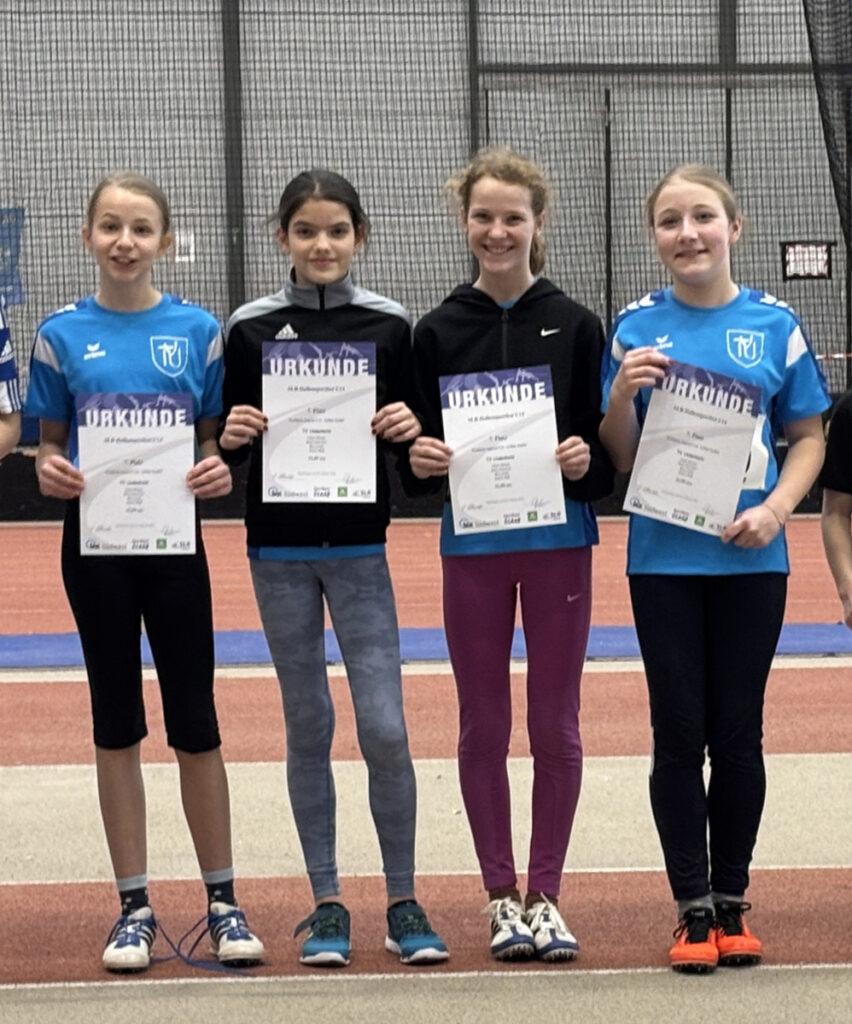 Die vier Mädchen erreichten bei ihrem Staffellauf (4x50m) den 7. Platz und lieferten bei den Einzelwettbewerben in den 4 Disziplinen (60 m Sprint, Weitsprung, Kugelstoßen, 800 m Lauf) tolle Leistungen ab. Dies gilt insbesondere für den 800 m-Lauf, in dem alle vier ihre Bestzeit gelaufen sind und sich dafür mit guten Platzierungen belohnt haben: Helen Meiser, 5. Platz; Emilia Blaß 7. Platz, Malia Gaschler 9. Platz und Mia Leidl 14. Platz. Beim Weitsprung schaffte Helen Meiser mit einer Weite von 3,70 m ihre bis dahin beste Leistung in dieser Disziplin und erreichte den 9. Platz.