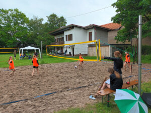 Erstmals starteten bei einer Beachmeisterschaft der weiblichen U16 gleich 3 TVU-Duos ins Turnier. Mia Karstadt/Lina May, Marlie Tuschen/Carla Weber sowie Charlotte Lohrum/Ellen Zenner zeigten dabei vor den Augen des mitorganisierenden Neu-Bundesligaspielers Erik Brand gegen Teams aus Hechtsheim, Dieblos und Bad Kreuznach tolle Leistungen und holten Achtungserfolge wie gewonnene Sätze. Nach der Vorrunde spielten die TVU-lerinnen die Plätze 3 bzw. 4 gegeneinander um die Platzierungen 5 bis 7. Hier gewann jedes Duo anschließend ein Match. May/Karstadt belegten daher nur aufgrund des besseren Satzverhältnisses Platz 5 vor Weber/Tuschen und Lohrum/Zenner.