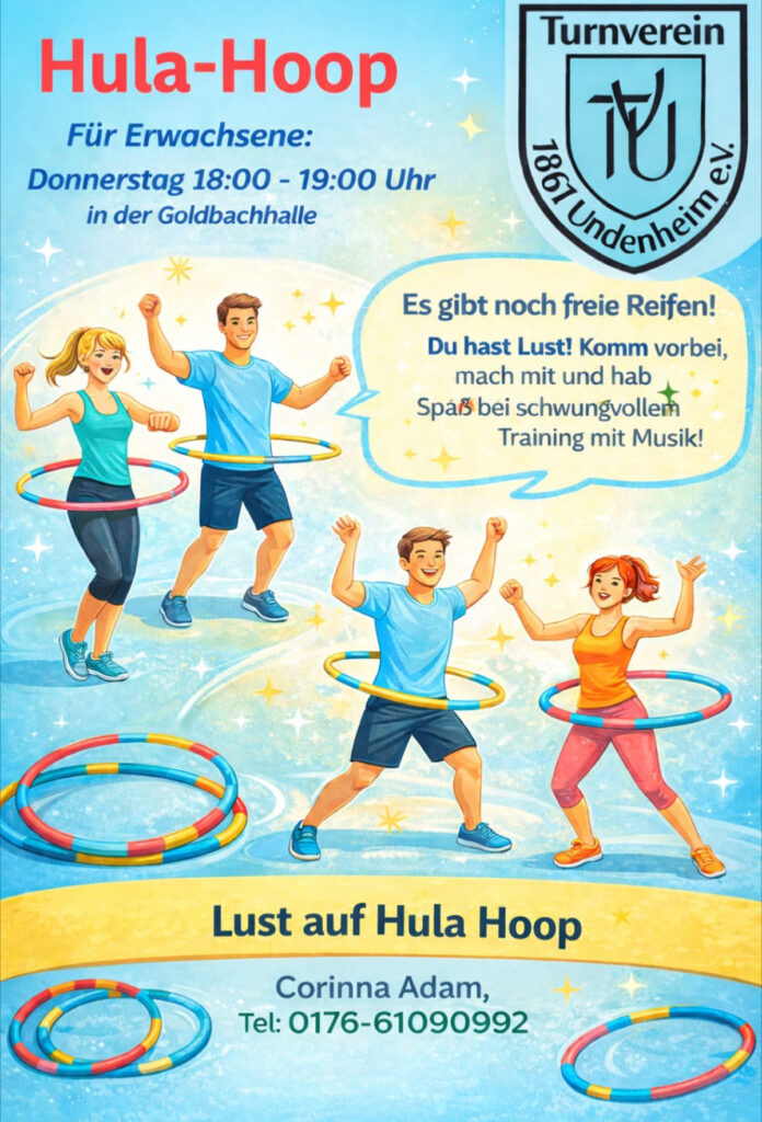 Der TVU bietet für seine Mitglieder „Hula Hoop“ jeden Donnerstag von 18-19 Uhr in der Goldbach-Halle in Undenheim an.