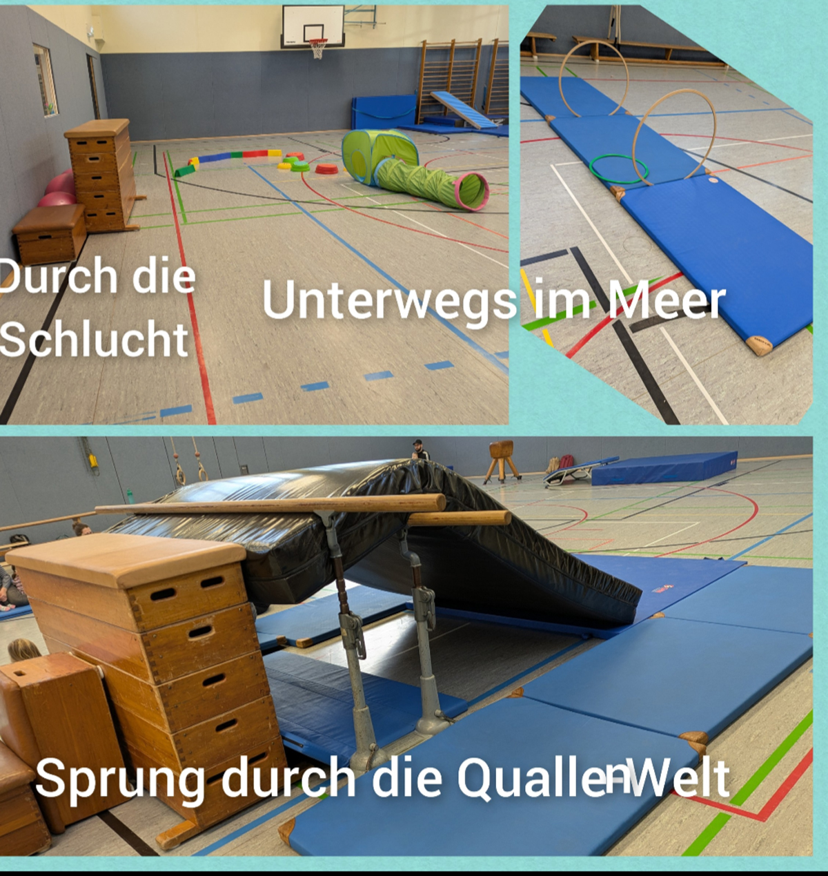 Für die Gruppe der 1-3-jährigen wird das Kleinkinderturnen – gemeinsam mit Mama, Papa oder einer anderen Bezugsperson – angeboten. Auf unseren Gerätelandschaften mit den unterschiedlichsten Themen – z.B. im Dschungel, unter dem Meer, im Zirkus, unterwegs mit dem BobbyCar – lernen die Kids die Welt des Kinderturnens kennen. Dabei besteht für die Kleinen die Möglichkeit, Erfahrungen mit ihrem Körper und ihren Sinnen zu sammeln und sich mit ihren Mitmenschen, den räumlichen und materiellen Gegebenheiten auseinanderzusetzen.